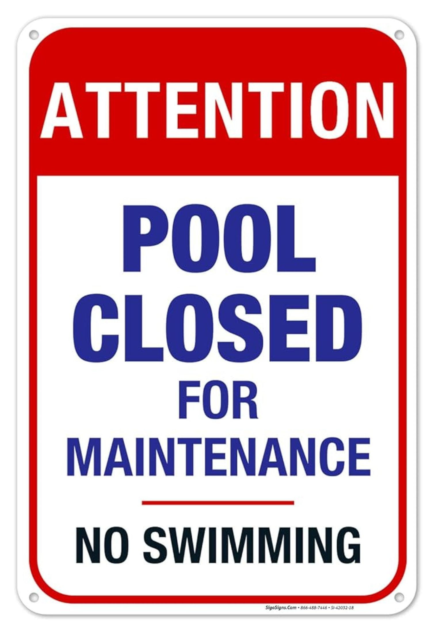 Pool Closed for Maintenance No Swimming Pool Sign 12x18 Inches 55