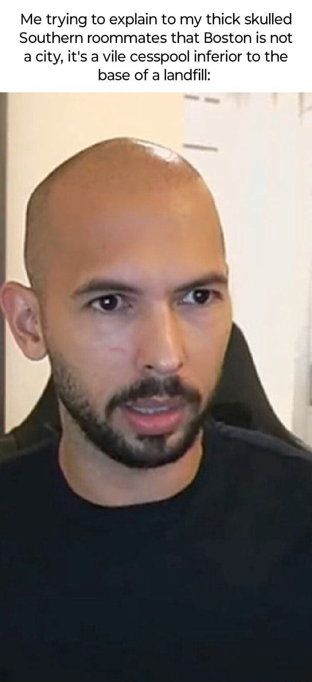 Me trying to explain to my thick skulled Southern roommates that Boston