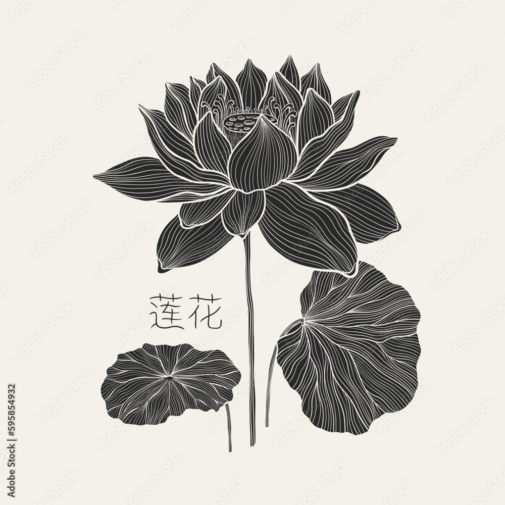 Premium Vector Freehand of a lotus with thin graceful lines against a