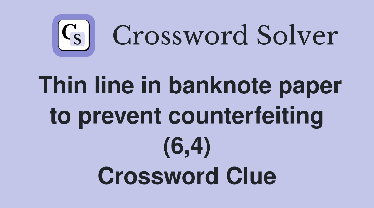 Thin line in banknote paper to prevent counterfeiting (6 4) Crossword
