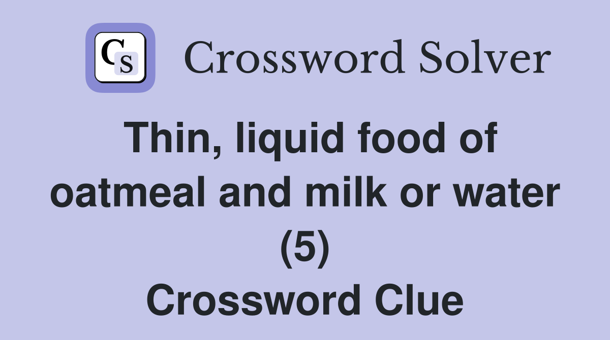 Thin liquid food of oatmeal and milk or water (5) Crossword Clue