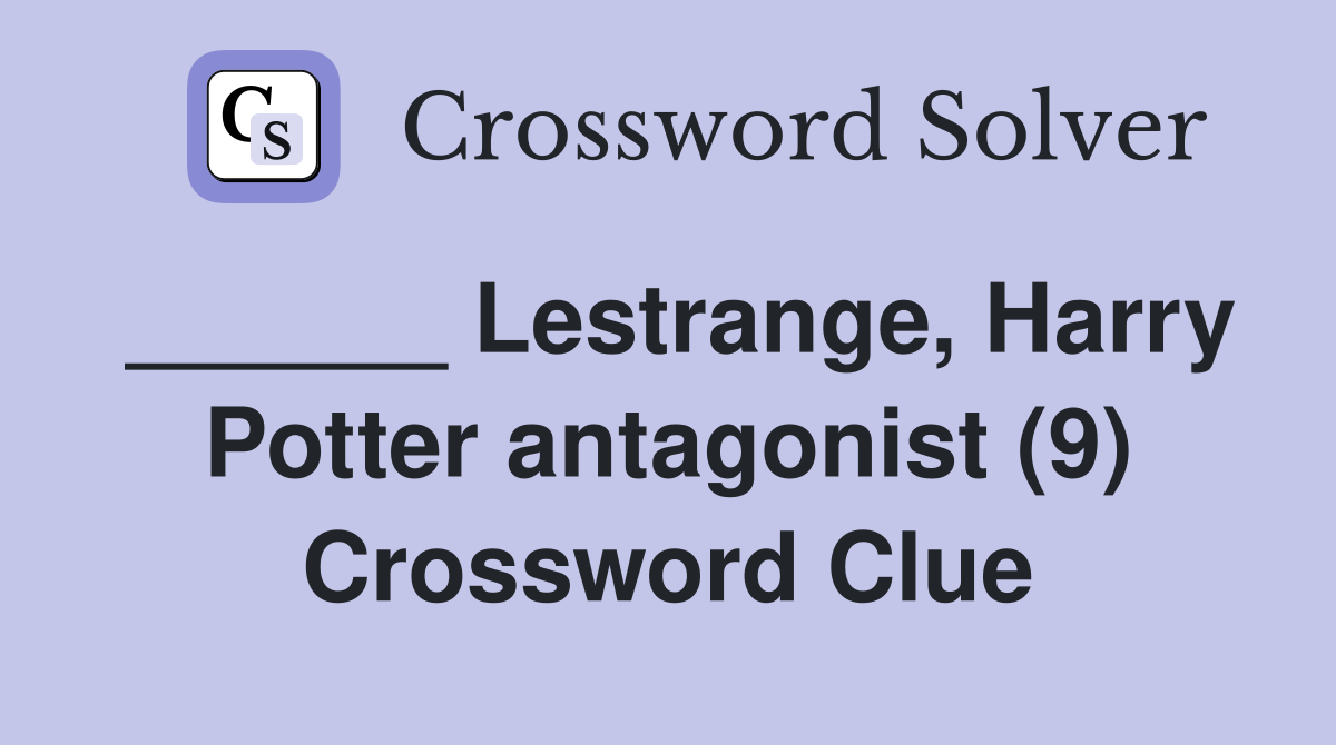 Lestrange Harry Potter antagonist (9) Crossword Clue Answers