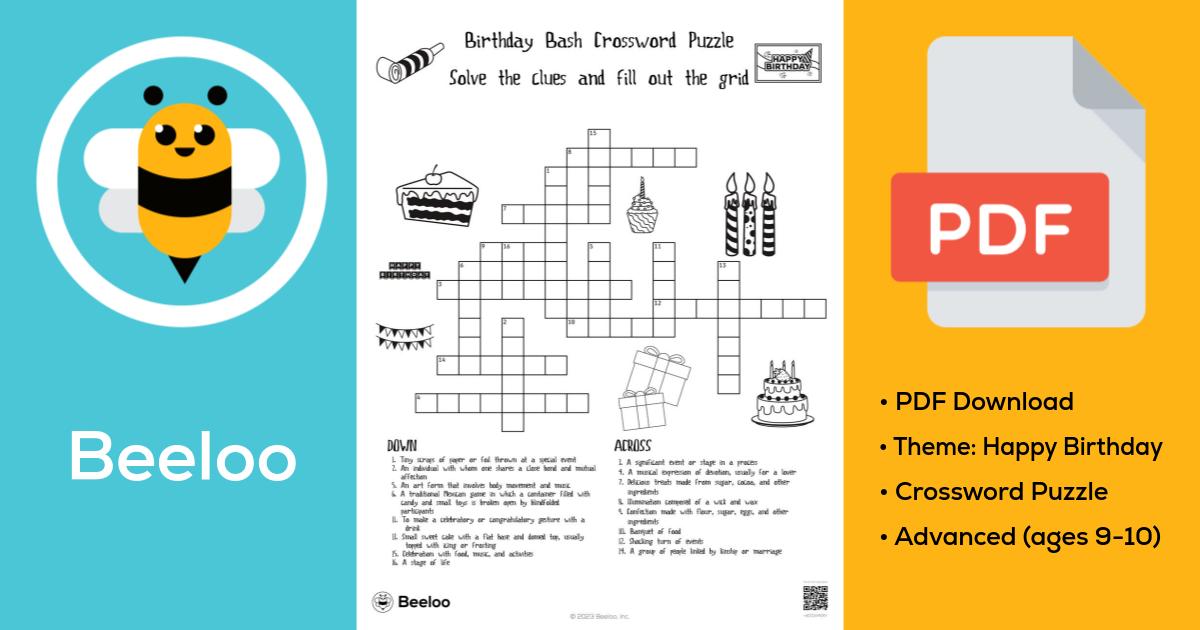 Birthday Bash Crossword Puzzle • Beeloo Printable Crafts and Activities