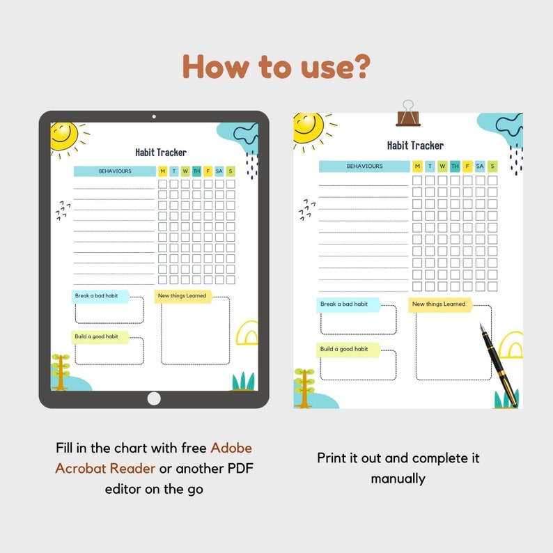 Printable Kids Habit Tracker Weekly Habit Chart Positive