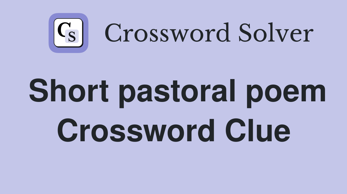 Short pastoral poem Crossword Clue Answers Crossword Solver