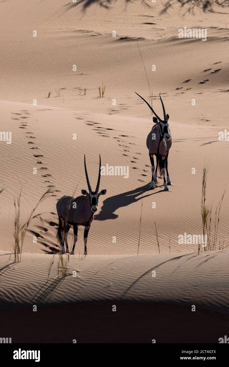 Two Oryx in the sand dunes of Namibia Stock Photo Alamy