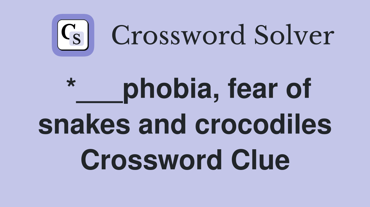 phobia fear of snakes and crocodiles Crossword Clue Answers