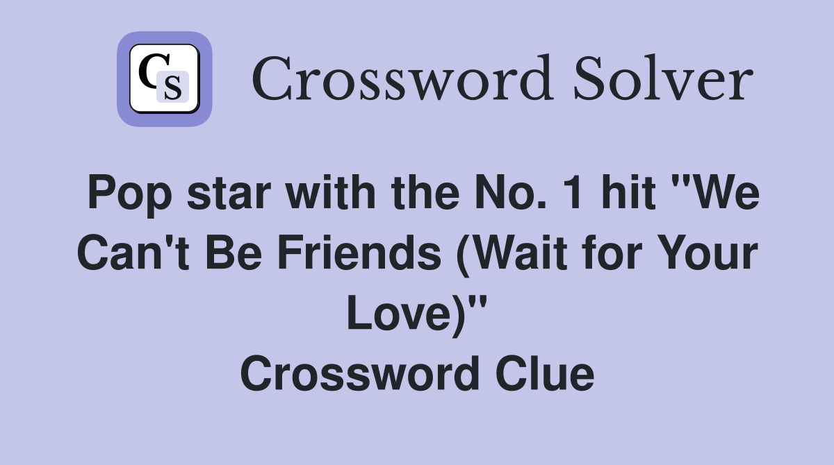 Pop star with the No 1 hit quot We Can #39 t Be Friends (Wait for Your Love
