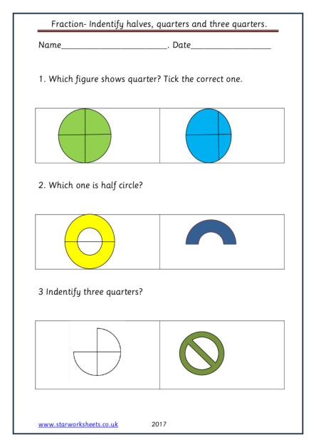 identify halves quarter three quarter Star Worksheets