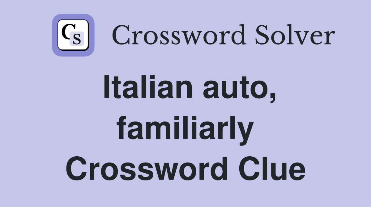 Italian auto familiarly Crossword Clue Answers Crossword Solver