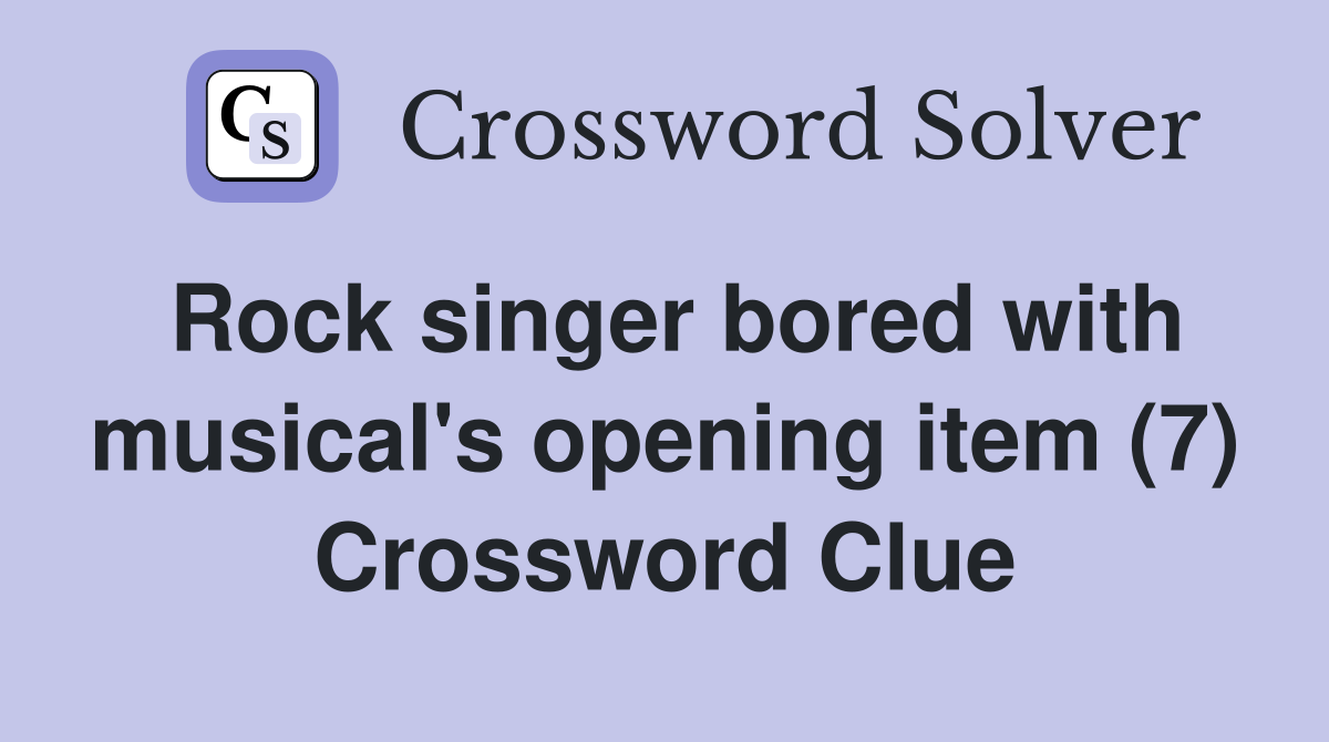 Rock singer bored with musical #39 s opening item (7) Crossword Clue