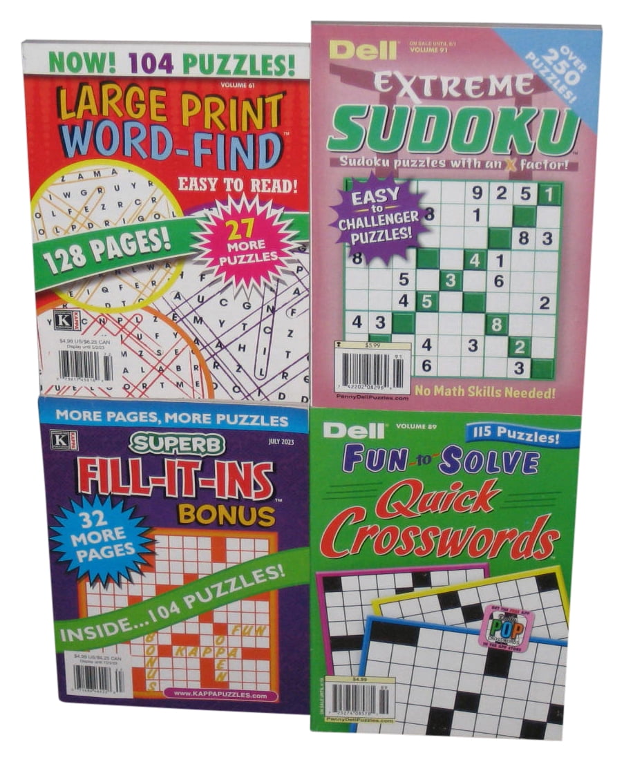 Lot of 4 Crossword Puzzle Books (Large Print Word Find / Sudoku