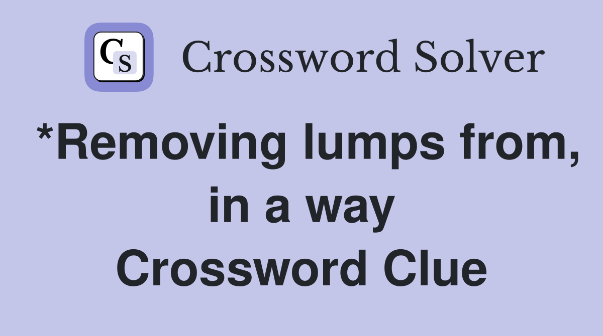 *Removing lumps from in a way Crossword Clue Answers Crossword Solver