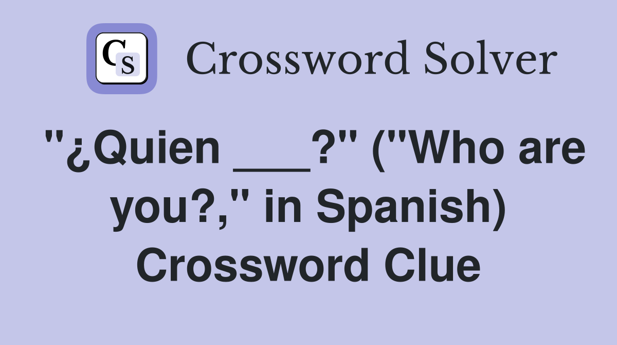 quot ¿Quien ? quot ( quot Who are you? quot in Spanish) Crossword Clue Answers