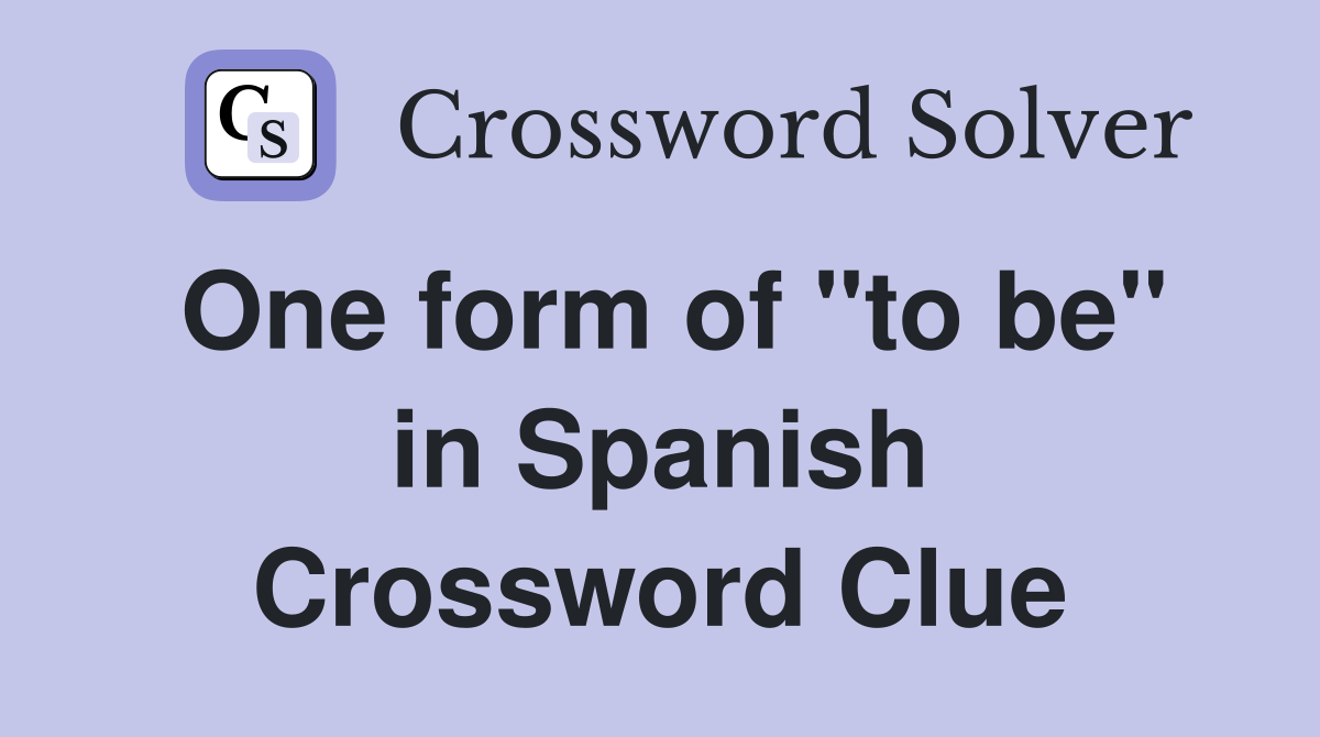 One form of quot to be quot in Spanish Crossword Clue Answers Crossword Solver