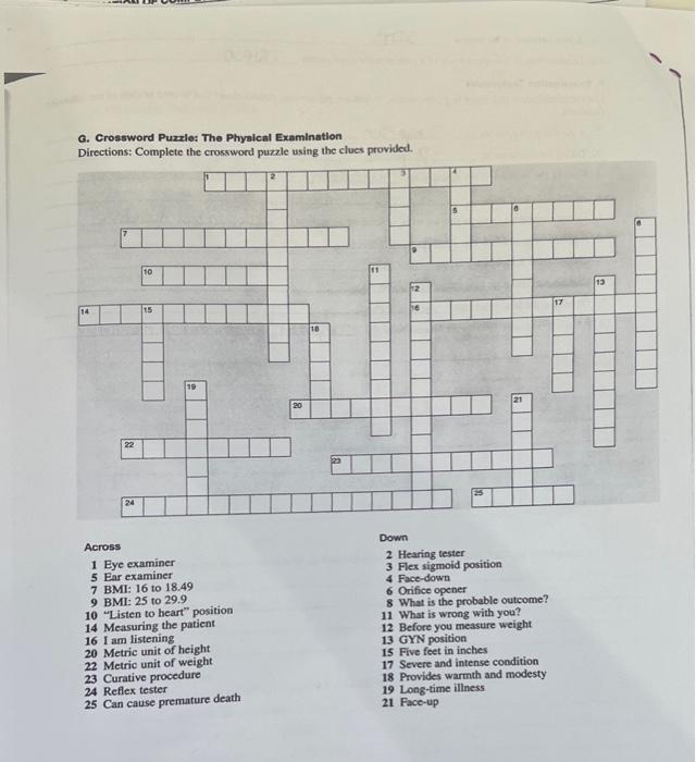 Solved G Crossword Puzzle: The Phyalcal Examination Chegg com