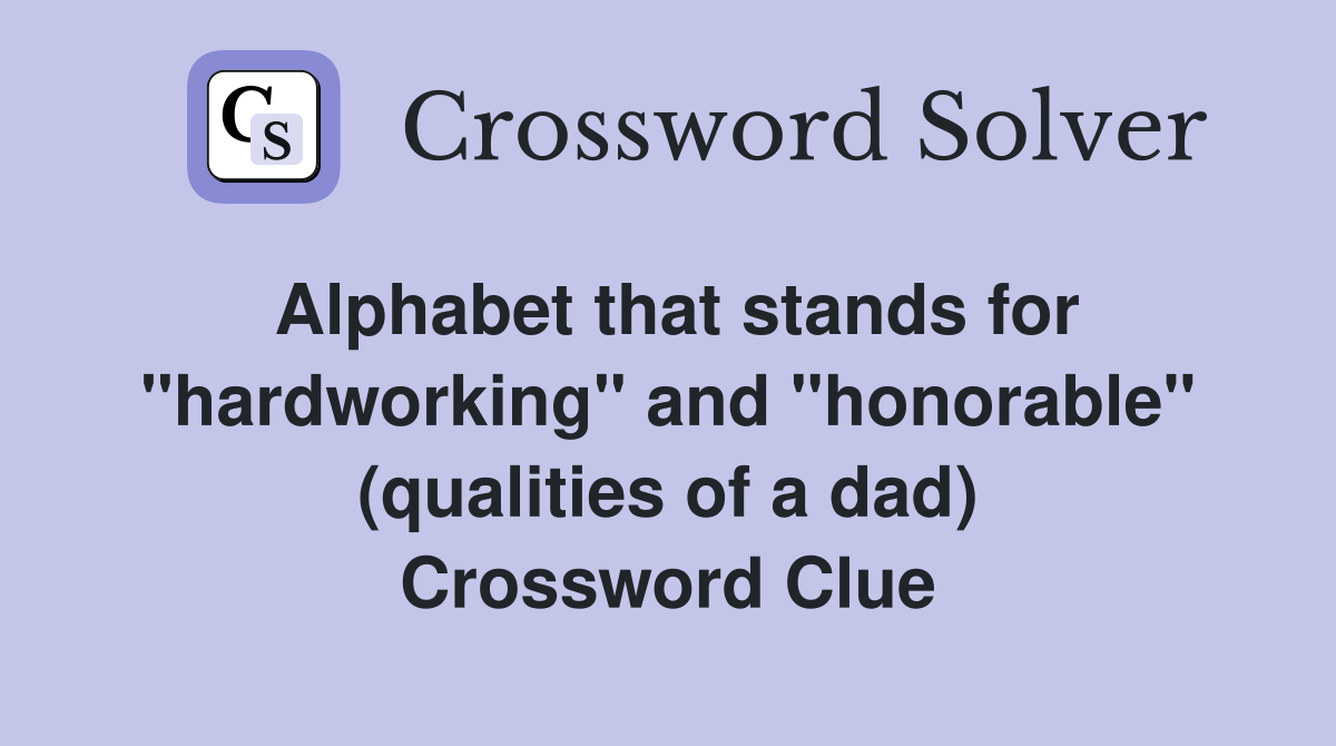 Alphabet that stands for quot hardworking quot and quot honorable quot (qualities of a