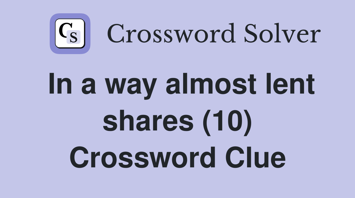 In a way almost lent shares (10) Crossword Clue Answers Crossword