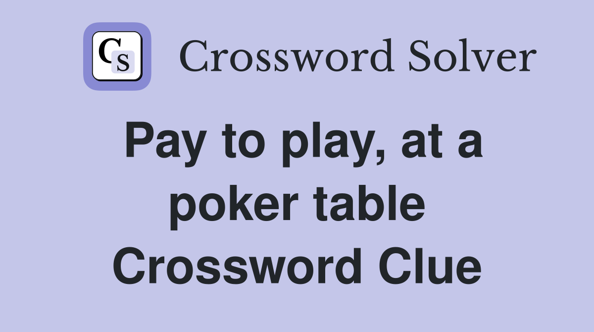 Pay to play at a poker table Crossword Clue Answers Crossword Solver