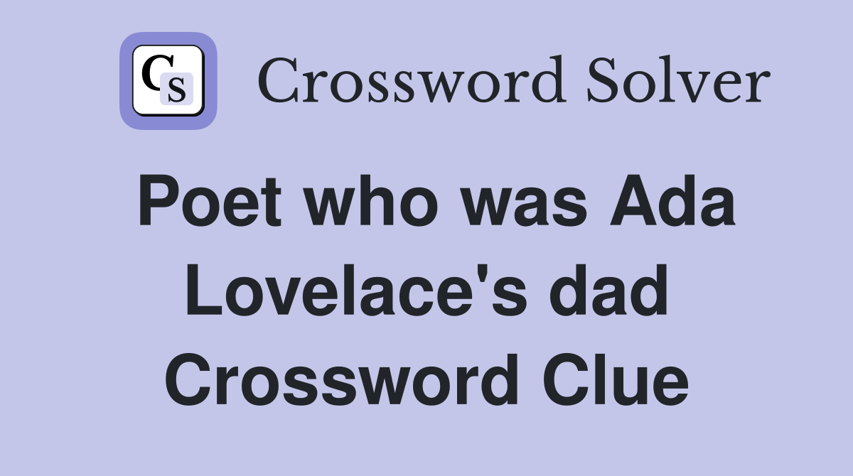 Poet who was Ada Lovelace s dad Crossword Clue Answers Crossword Solver