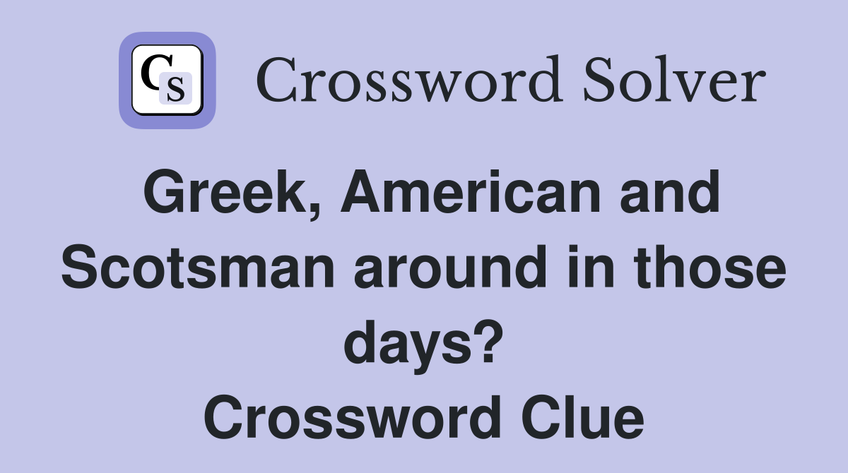 Greek American and Scotsman around in those days? Crossword Clue