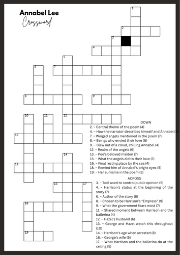 Annabel Lee Revision Crossword Teaching Resources