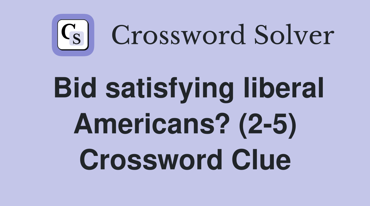 Bid satisfying liberal Americans? (2 5) Crossword Clue Answers