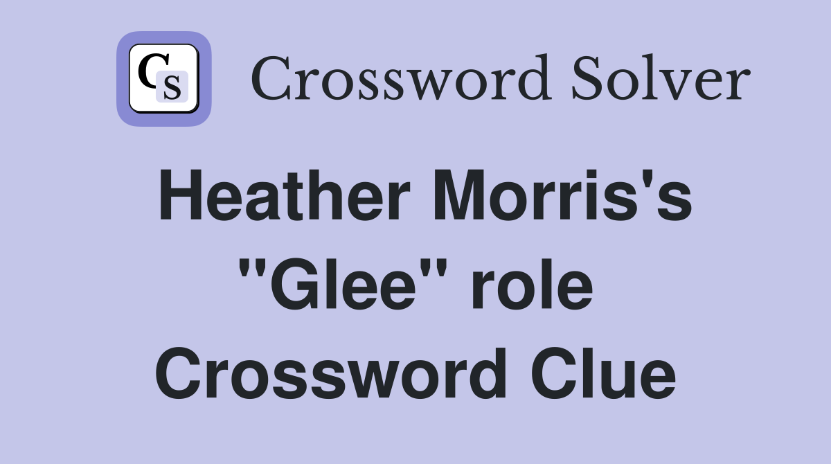 Heather Morris #39 s quot Glee quot role Crossword Clue Answers Crossword Solver