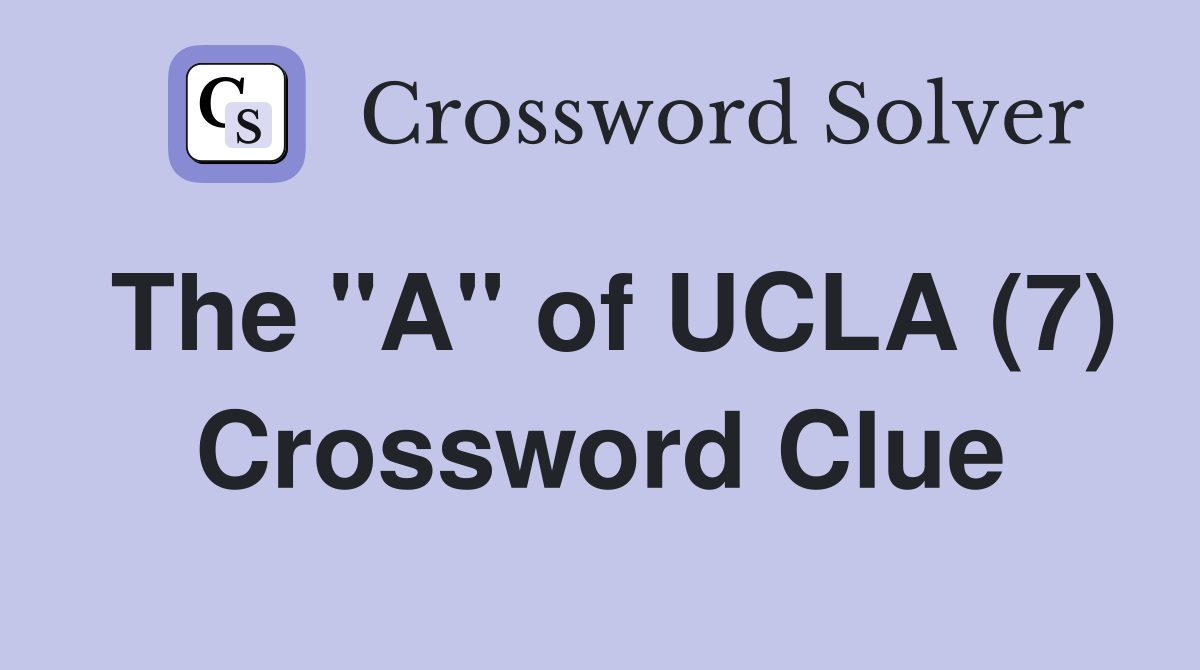 The quot A quot of UCLA (7) Crossword Clue Answers Crossword Solver
