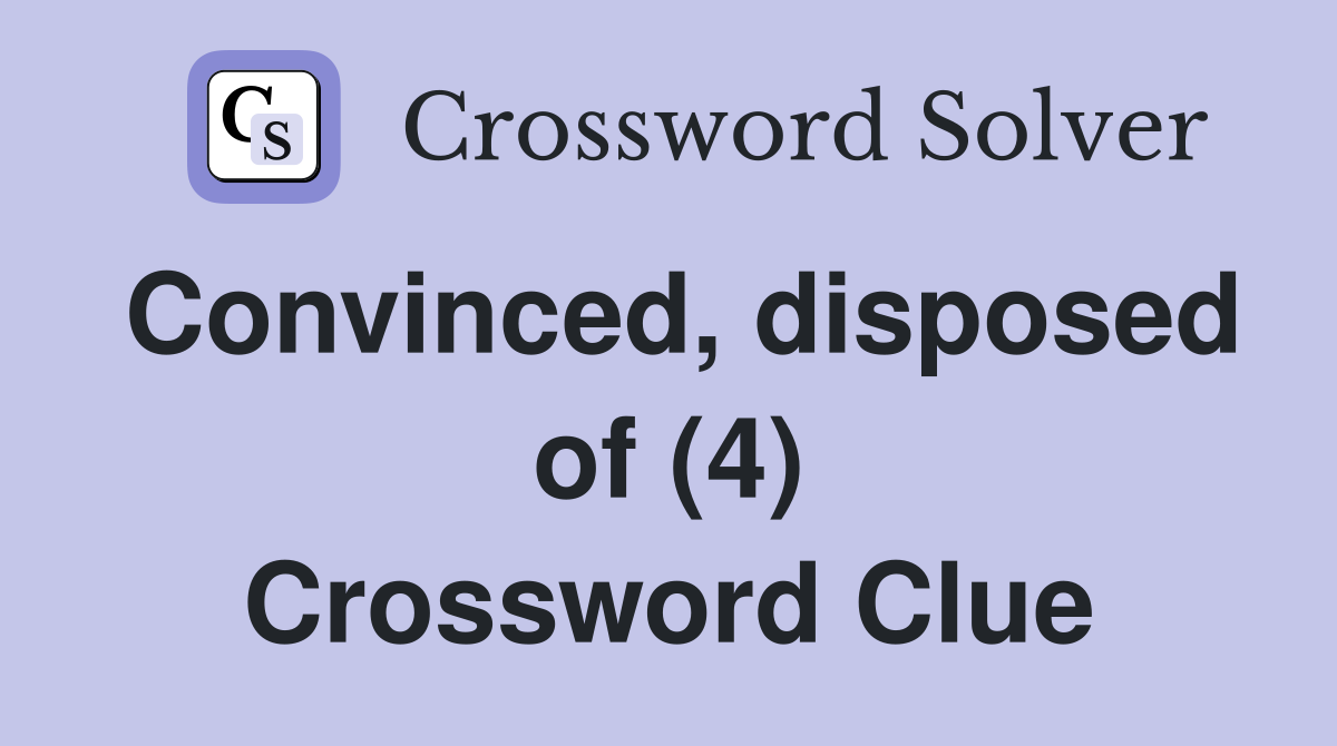 Convinced disposed of (4) Crossword Clue Answers Crossword Solver