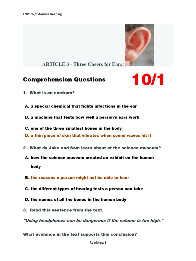 Article 3 Three Cheers For Ears Worksheet PDF Hearing Ear