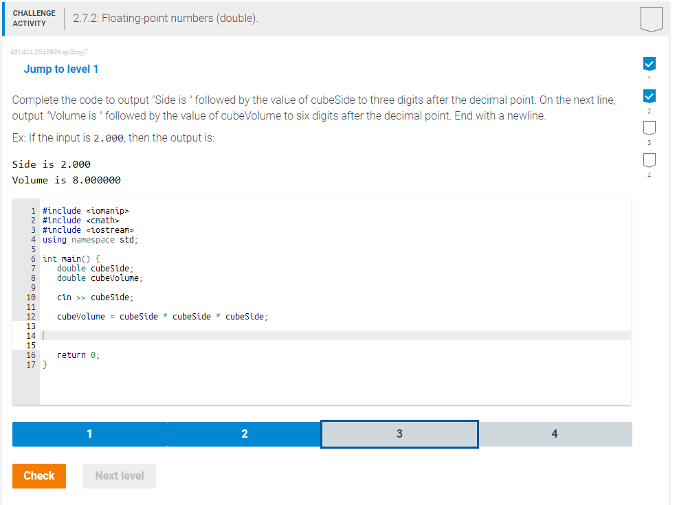 Solved Jump to level 1 Complete the code to output quot Side is Chegg com