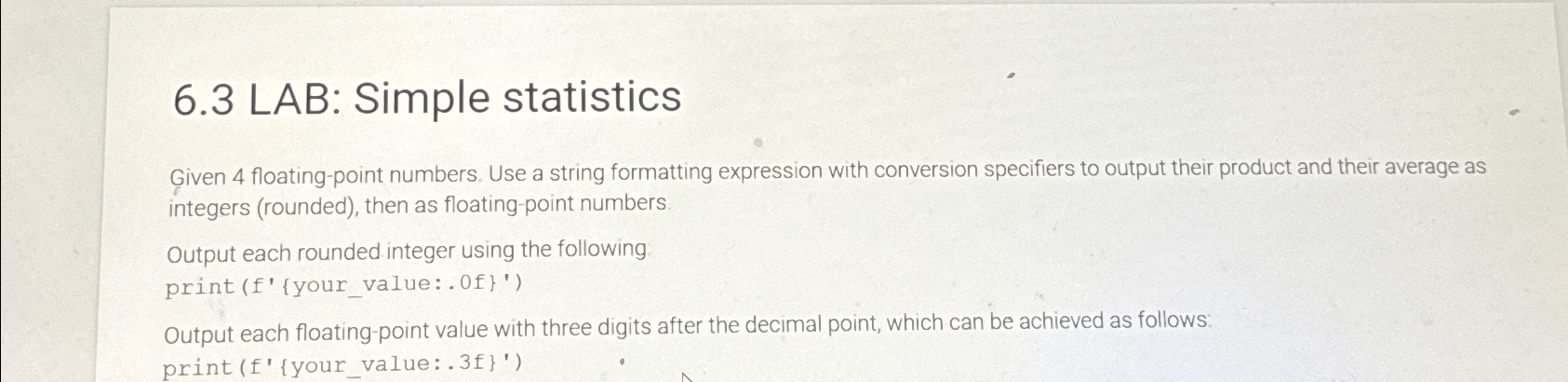 Solved 6 3 LAB: Simple statisticsGiven 4 floating point Chegg com