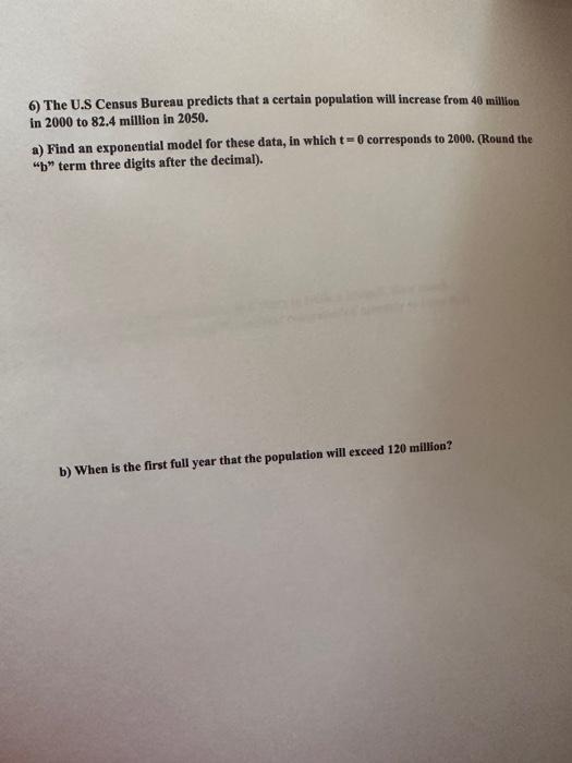 Solved 6) The U S Census Bureau predicts that a certain Chegg com