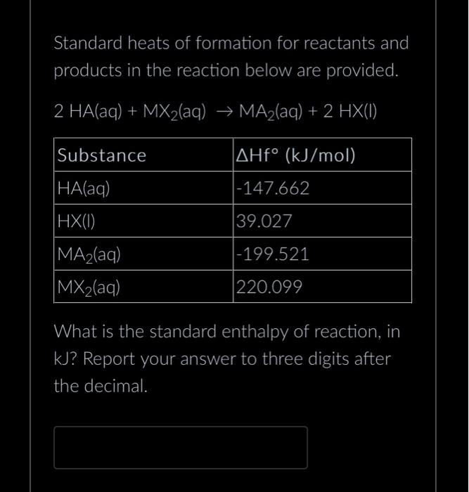 Solved Standard heats of formation for reactants and Chegg com