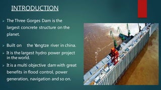 Structure such as the Aswan in Egypt and the Three Gorges in China