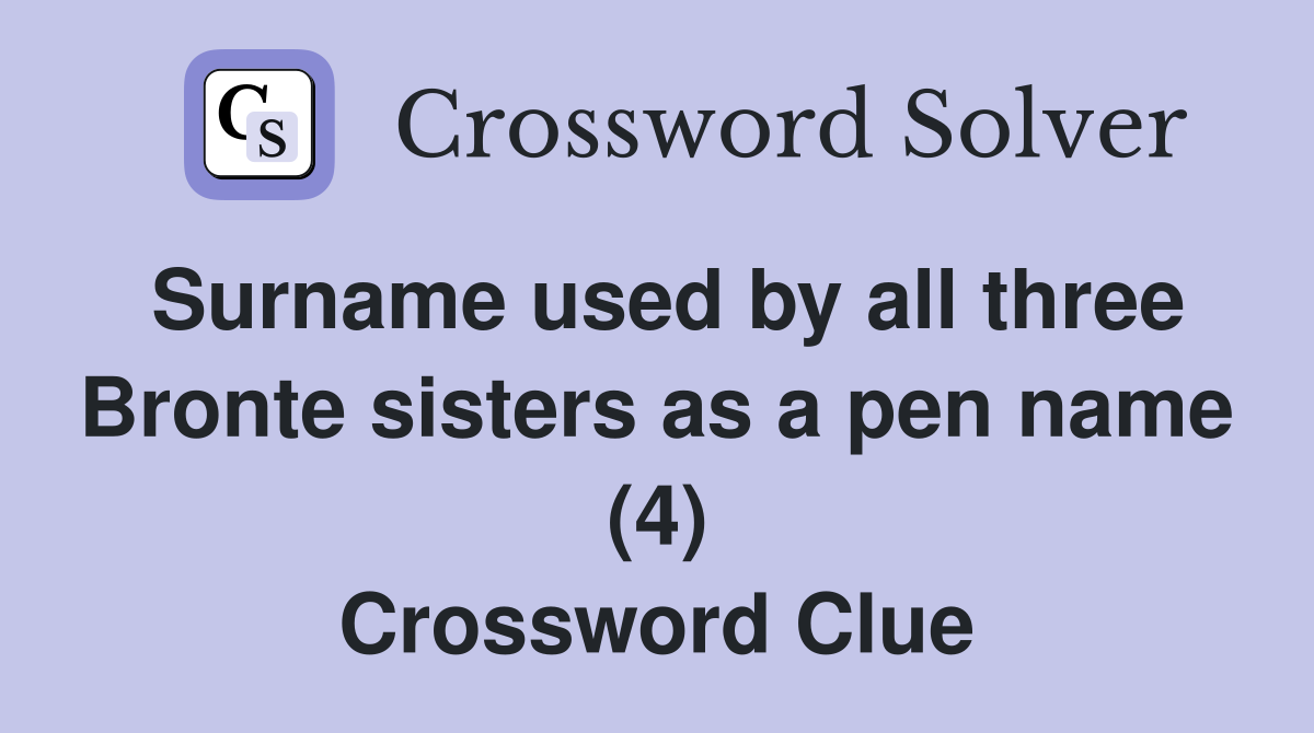 Surname used by all three Bronte sisters as a pen name (4) Crossword