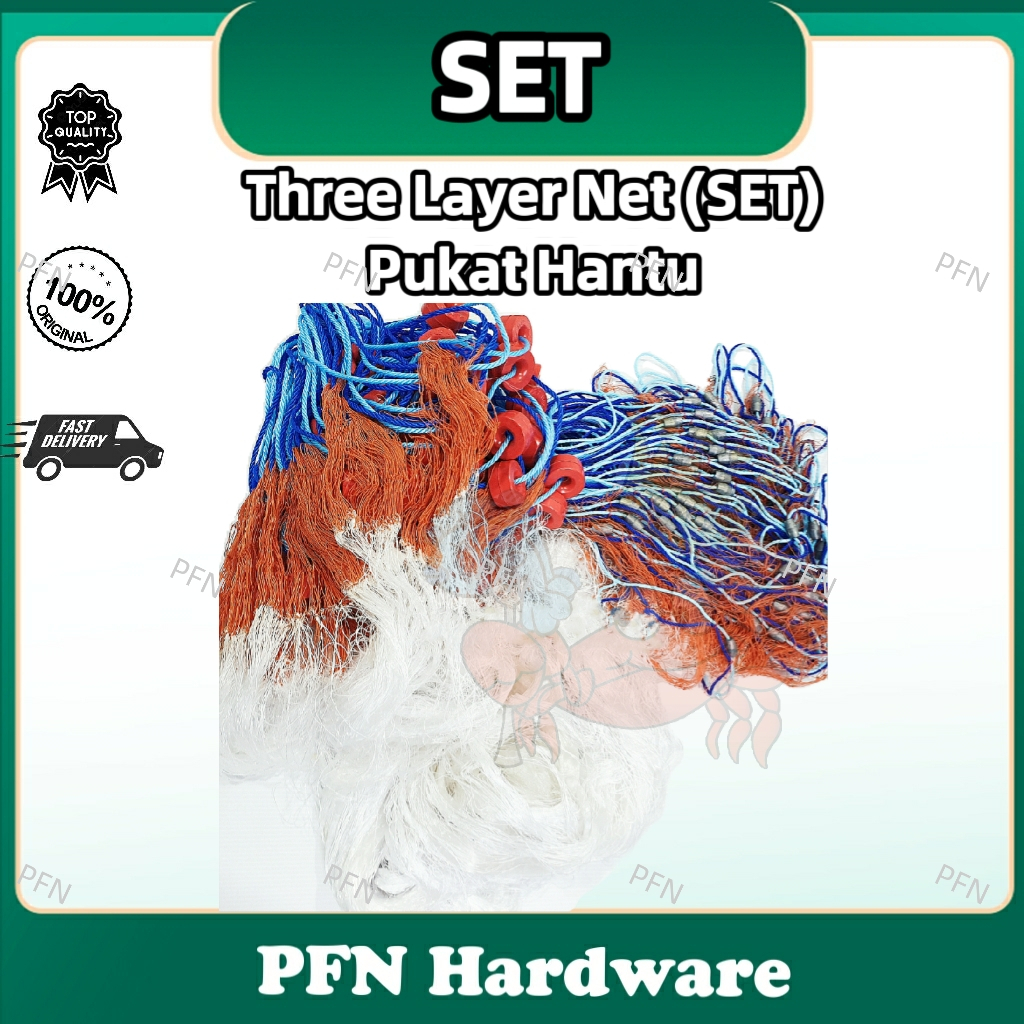 (SET)Jaring Pukat Hantu Tiga Lapis 0 15DK 110/2X 3 8CM X 50MD X 70MTR