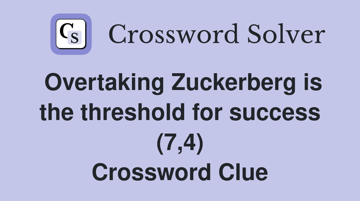 Overtaking Zuckerberg is the threshold for success (7 4) Crossword