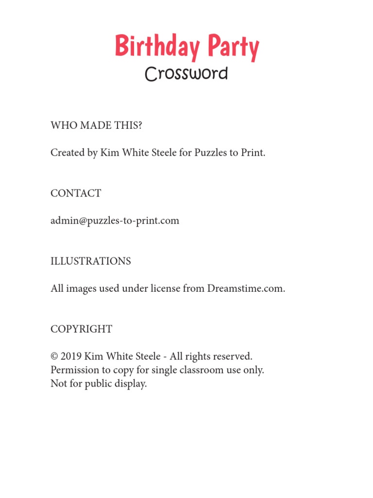 Birthday Party Crossword by InspireLearnTeach 2030 TPT