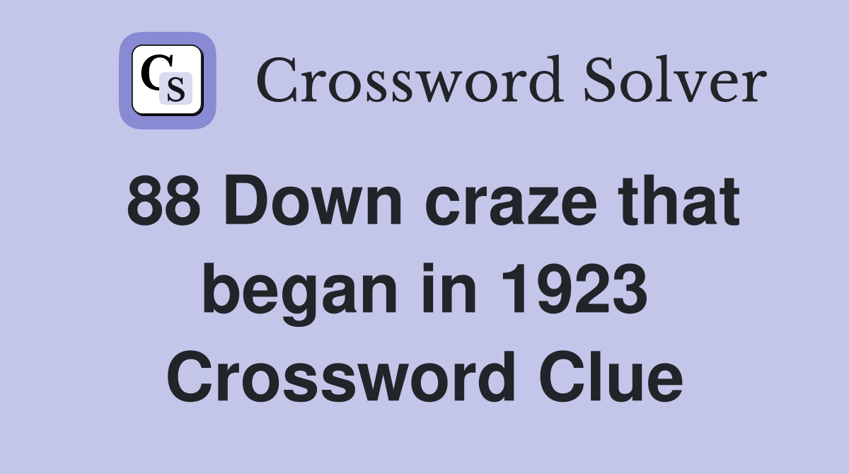 88 Down craze that began in 1923 Crossword Clue Answers Crossword