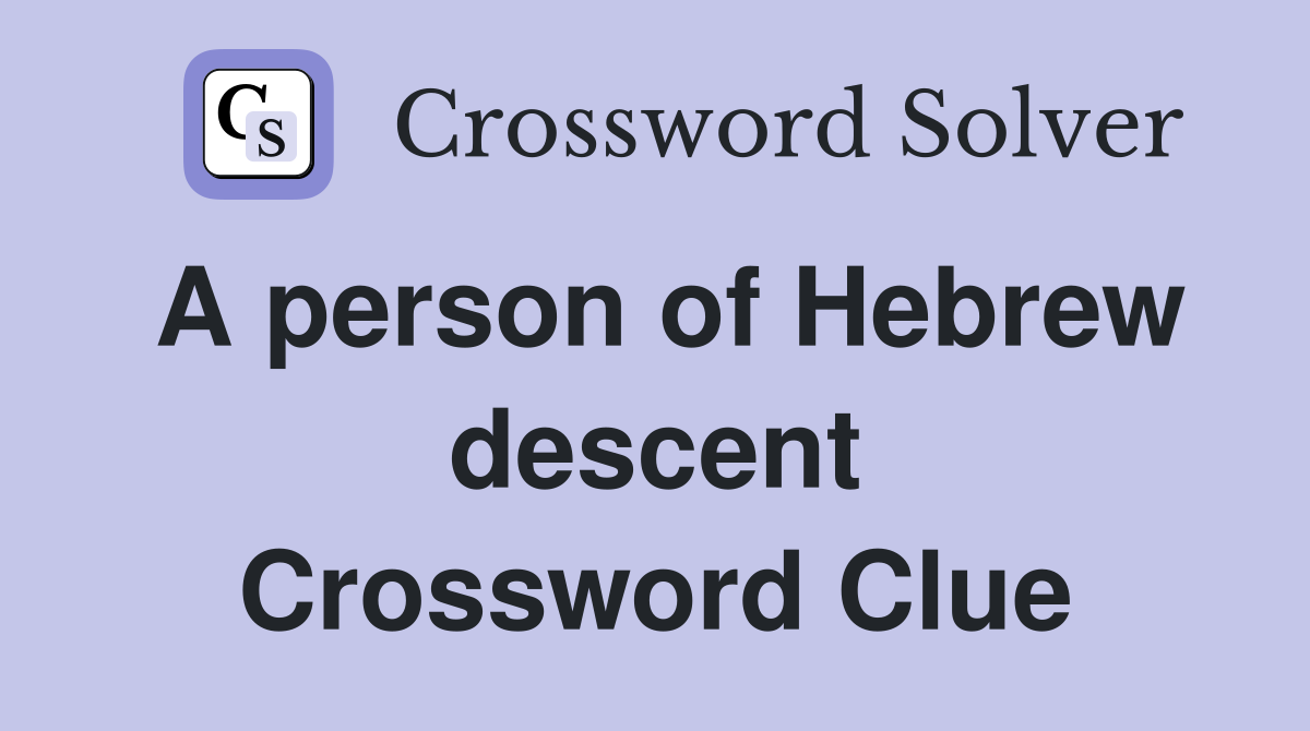 A person of Hebrew descent Crossword Clue Answers Crossword Solver