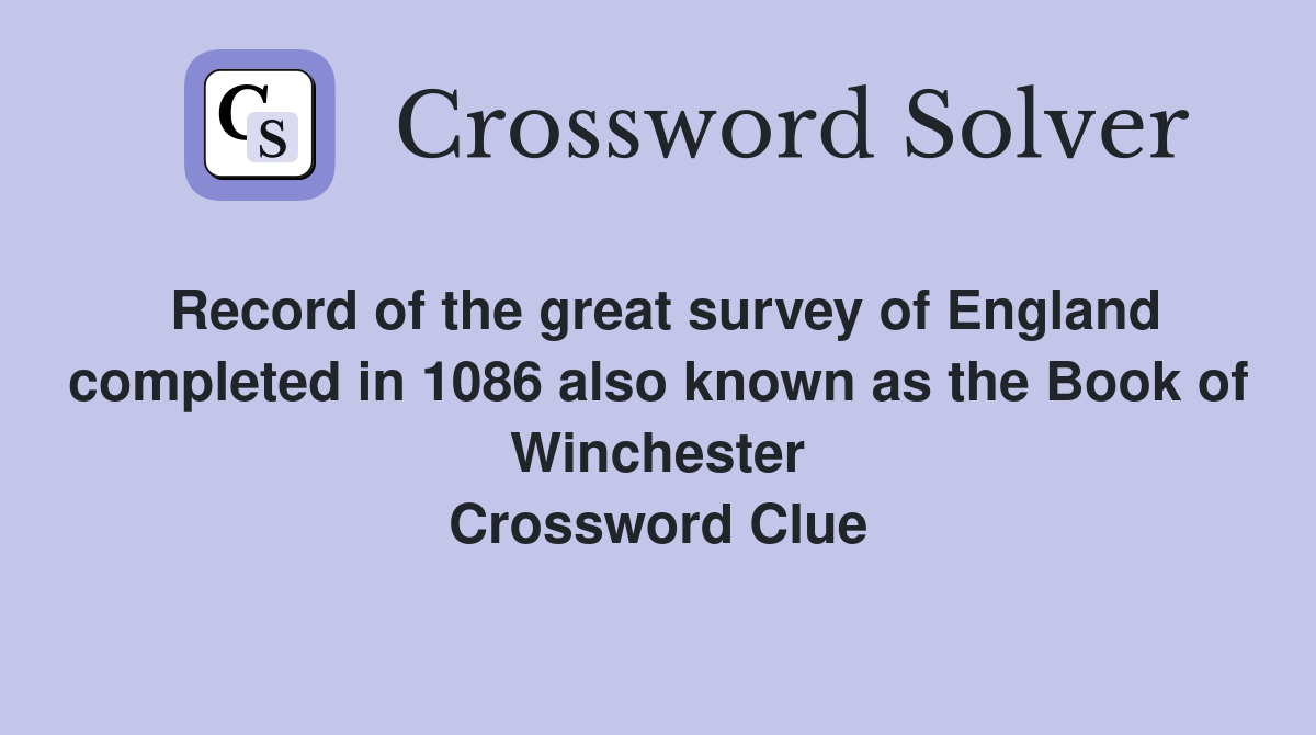 Record of the great survey of England completed in 1086 also known as