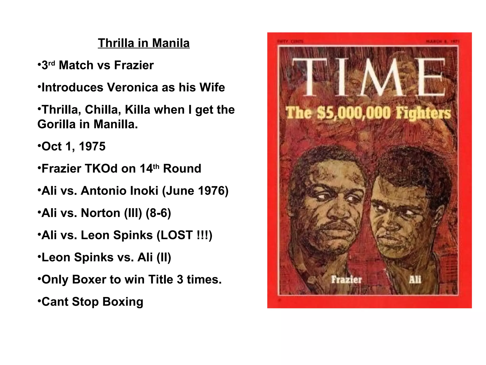 Muhammad Ali vs Joe Frazier Thrilla in Manila (1975) Photographic