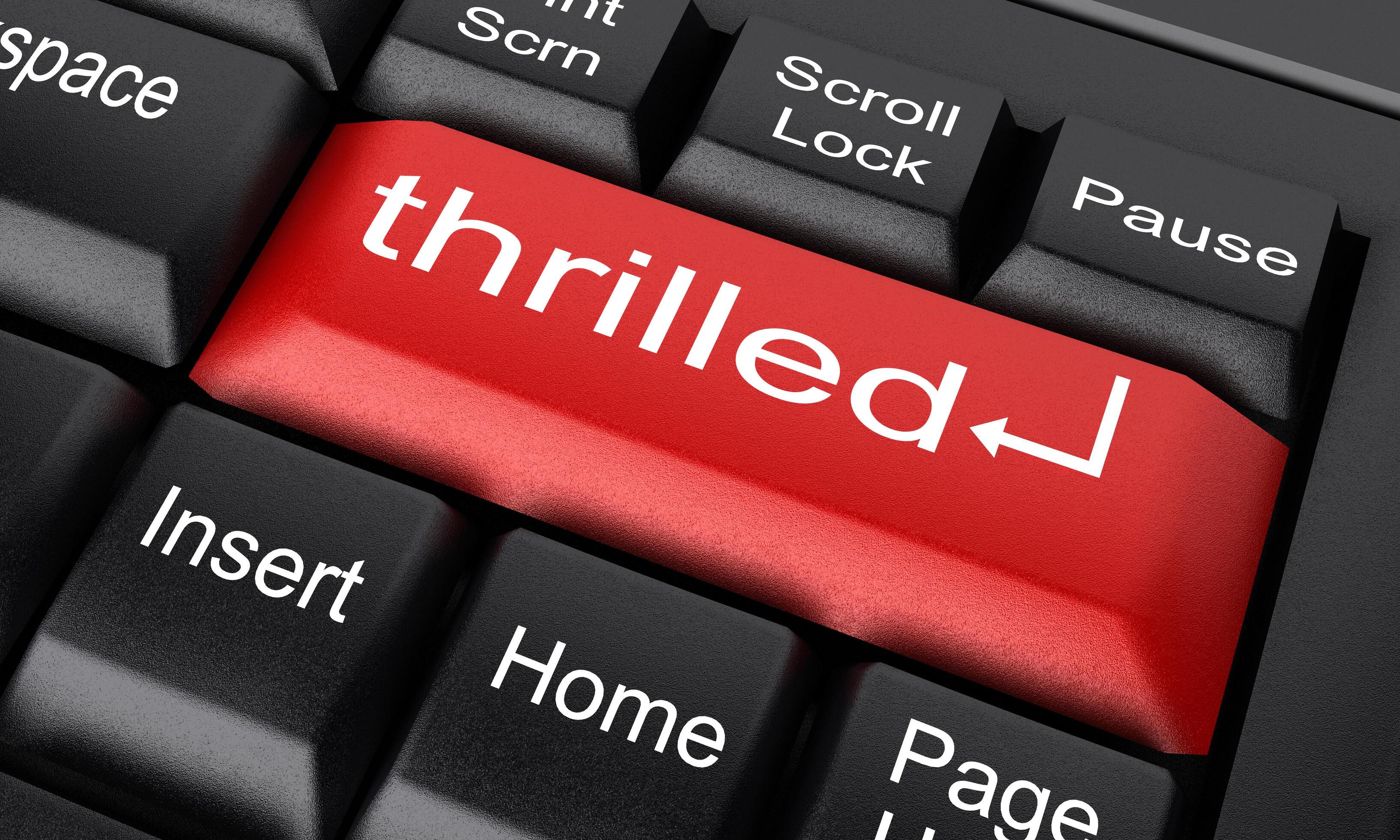 thrilled word on red keyboard button 6145651 Stock Photo at Vecteezy