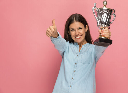 woman winner thrilled delighted unambitious enthusiastic merry
