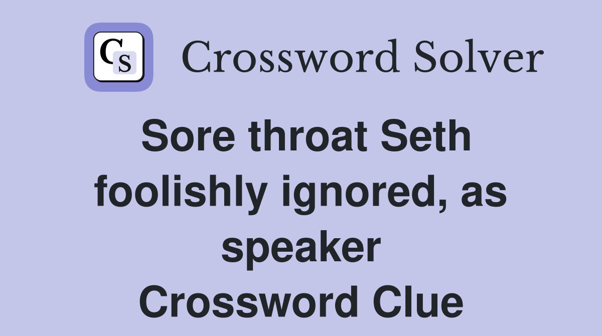 Sore throat Seth foolishly ignored as speaker Crossword Clue Answers
