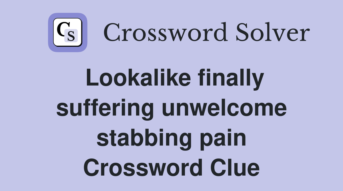 Lookalike finally suffering unwelcome stabbing pain Crossword Clue