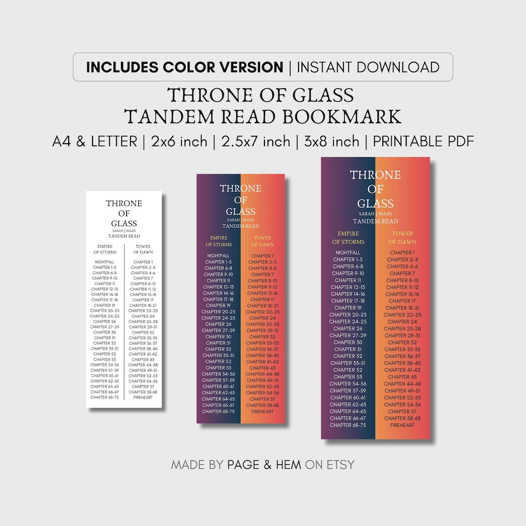 DIGITAL DOWNLOAD Throne of Glass Tandem Read Bookmarks Etsy