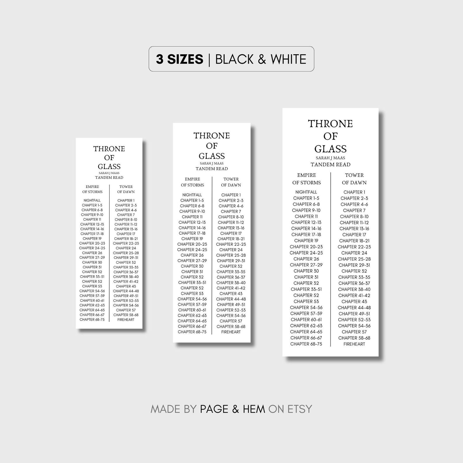 DIGITAL DOWNLOAD TOG Throne of Glass Tandem Read Printable Bookmarks